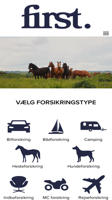 100%first forsikring er til både privat og erhverv, beregn pris på din forsikring online på first.dk, du kan tegne din forsikring online.