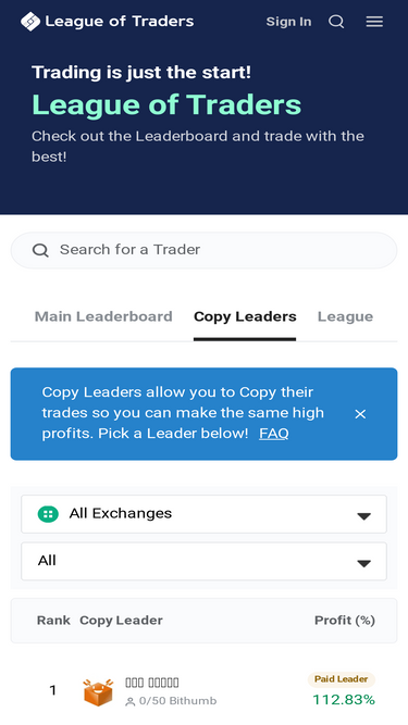 100%The one-stop-shop to maximize your profits, see all of your exchanges in one portfolio, Copy Trade the best Traders, and compete in trading competitions to win cash prizes! Sign up now and become a member of the League of Traders.