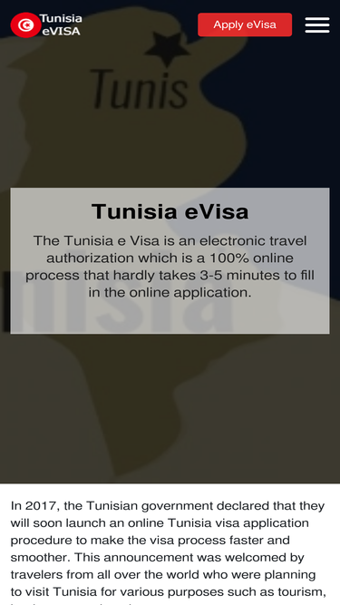 74%tunisian government declared that they will soon launch an online tunisia visa application procedure to make the visa process faster and smoother. this announcement was welcomed by travelers from all over the world who were planning to visit tunisia for various purposes such as tourism, business, or education.