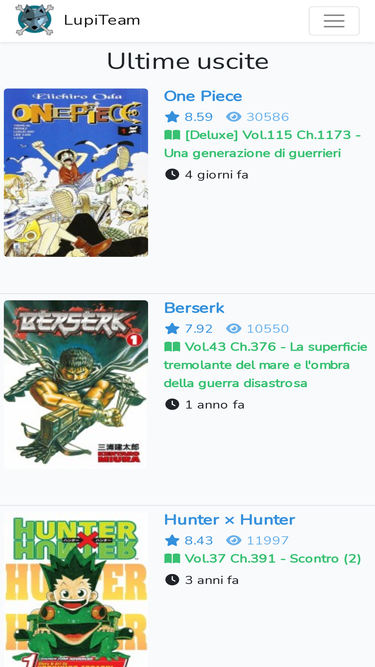 88%Sito ufficiale dei LupiTeam - traduzioni manga in italiano (One Piece, Hunter x Hunter, Berserk)