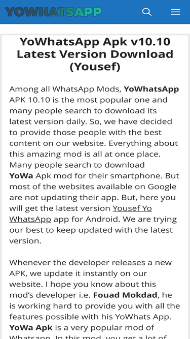 81%Download YoWhatsapp Apk v10.10 Latest Version For Android 2026 (AntiBan). Yousef/Fouad YoWa 10.10f. Get Official Yo WhatsApp App download link.
