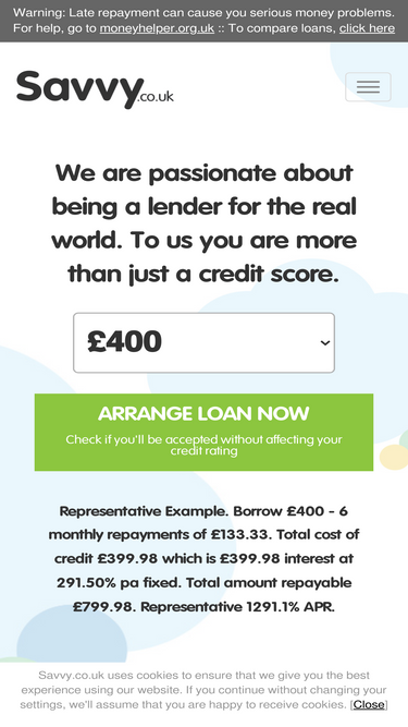 82%savvy.co.uk offers loans from £300 - £1200. we specialise in helping people with lower than average credit history. apply now to see if you qualify.