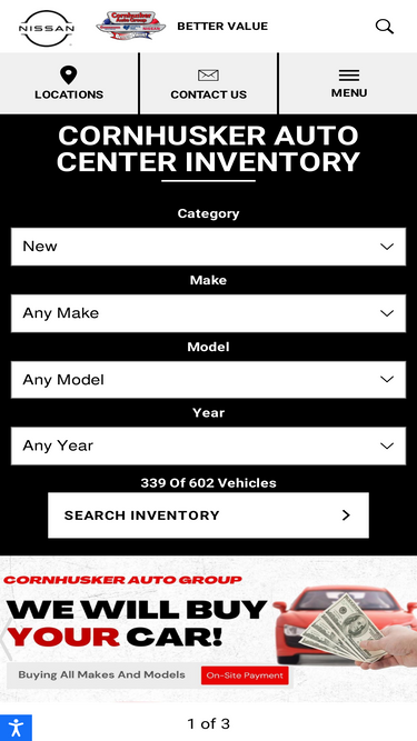 98%Cornhusker Auto is the car dealer for Nebraska. They have many locations with cars and trucks from Dodge, Chrysler, Jeep, Suzuki, Nissan, GM, Buick, Chevrolet and Pontiac. Stop on in and find some great Cornhusker deals!