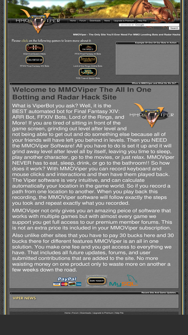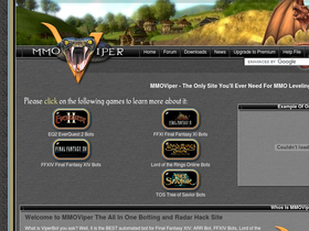 100%welcome to mmoviper. here you will find bots for everquest 2, lotro, final fantasy xiv, tree of savior and more mmo bots and radars hacks