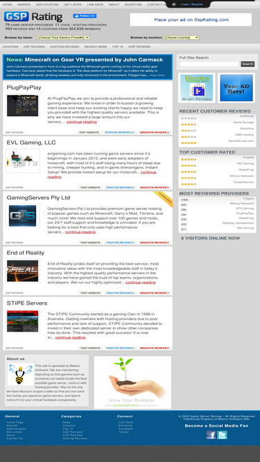 100%the #1 website on the internet for game servers ratings, reviews and coupons. get the latest coupon codes to save money on your online game servers, ventrilo or team-speak servers. submit your company online for review by our visitors and your future customers.