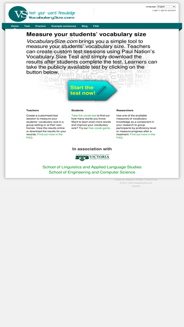 88%find out how many words you know with this free vocabulary size test. the english vocabulary size test is free for students and learners take. teachers and researchers can create customised test sessions to measure their students' vocabulary sizes and then download the results.