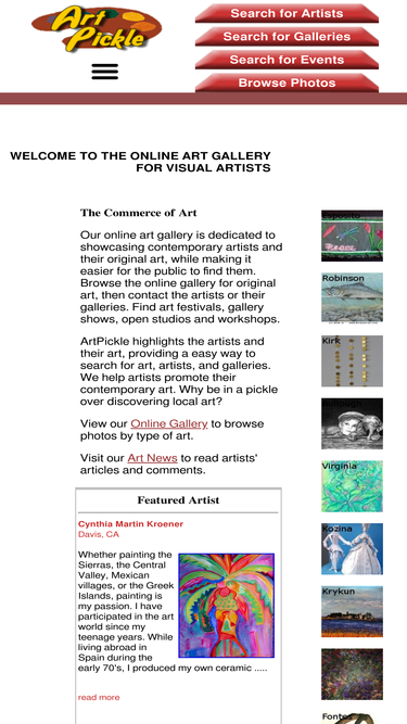 100%online art gallery for local artists, art studios, art galleries, art organizations, and art shows. find or browse for artists, galleries and art festivals. a website galleries where artists can promote their work.