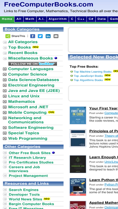 80%links to free computer, mathematics, technical ebooks and lecture notes all over the world, directory of online free computer, programming, engineering, mathematics, technical books, ebooks, lecture notes and tutorials. very well categorized. equipped with advanced search engines.
