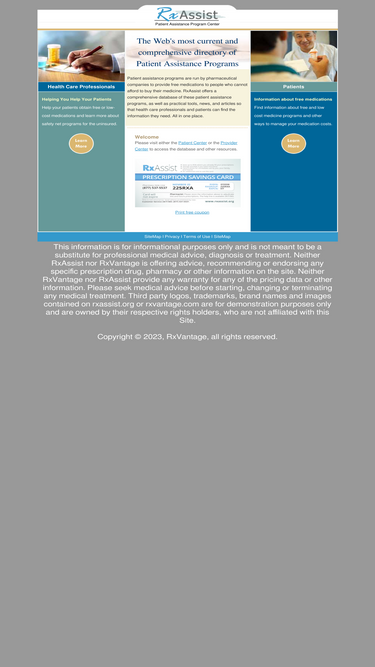 100%NeedyMeds has free information on medication and healthcare costs savings programs including prescription assistance programs and medical and dental clinics.