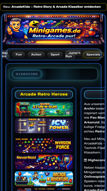92%Kostenlose Minigames & Retrogames: Spiele-Downloads, Arcade-Klassiker und Retro-Feeling bei Minigames.de.