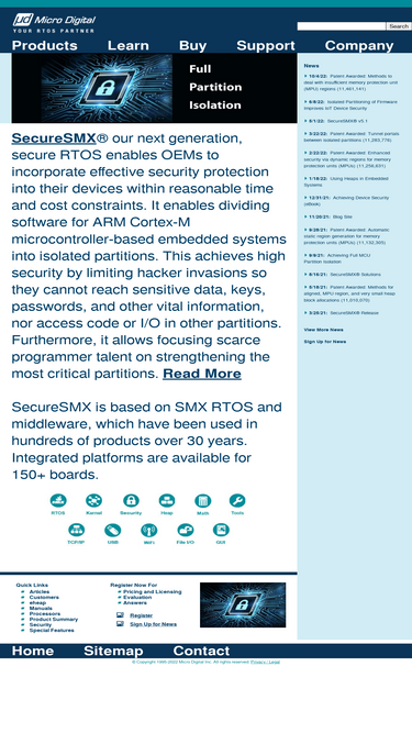 90%smx rtos for arm, cortex, coldfire, powerpc embedded systems. royalty free. real time multitasking kernel, usb h/d/o, wifi, fat flash filesystem, tcp/ip, gui. designed for demanding real-time apps.