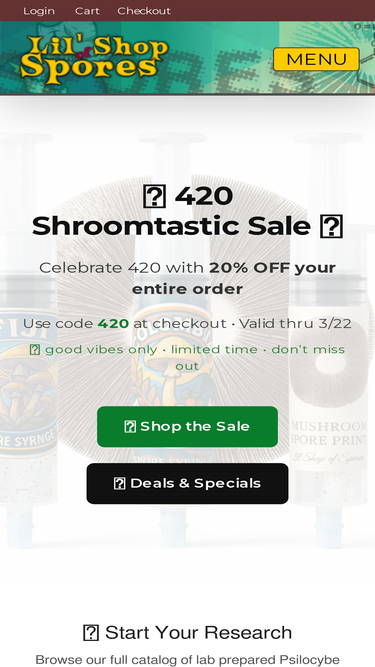 75%Welcome to SporeStore.com! Our spore company was first established in 2006. With over 40 years of combined academic experience, our only mission is to provide high quality rare and exotic premium spores. Our #1