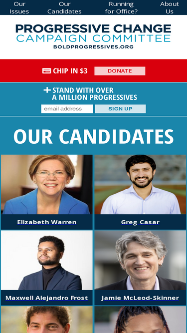 81%The Progressive Change Campaign Committee is a million-member grassroots organization building power at the local, state, and federal levels. We advocate for economic populist priorities like expanding Social Security, debt-free college, Wall Street reform, and the public option. We’re the Elizabeth Warren wing of American politics!