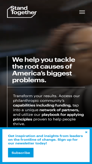 87%Stand Together Music, Sports & Entertainment strives to be the leading partner for artists, athletes, and leaders who want to solve America's biggest problems by empowering people.
