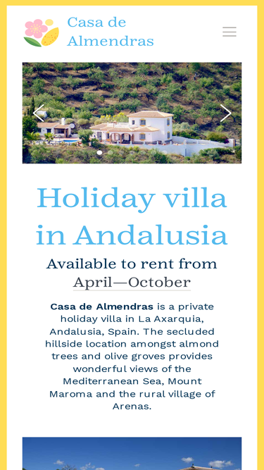 casa de almendras holiday villa to let - andalucia spain. located on the costa del sol with spectacular views of the mediterranean sea, mount maroma and the friendly rural village of arenas