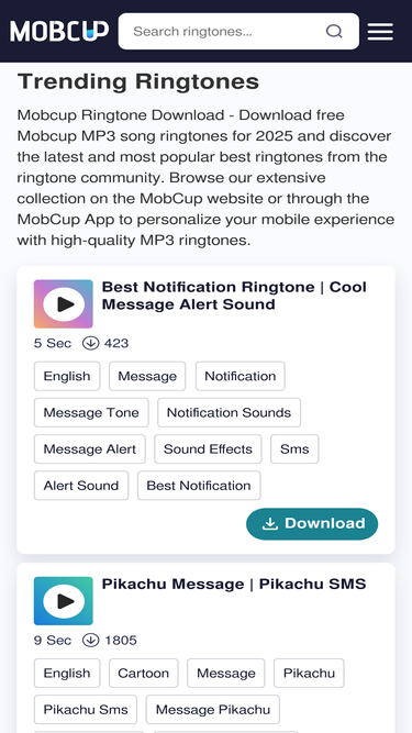 95%Explore and download millions of exclusive Popular MobCup ringtones to personalize your phone. Find the perfect free MobCup ringtone 2025 and improve your ringtone experience.