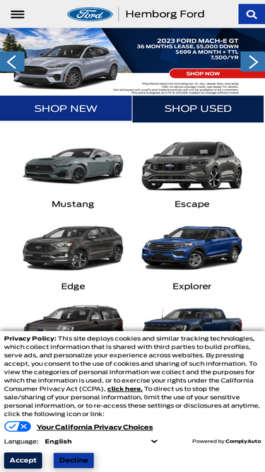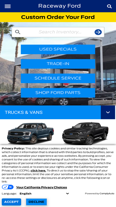 we are your orange county cty ford dealer serving anaheim! browse our new & used ford cars, suvs & trucks for sale. browse our explorer, f-150, and edge inventory. we provide ford lease specials, service, parts & more to all of rancho santa margarita , riverside & irvine!