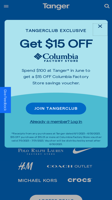 90%Join TangerClub for instant savings and exclusive rewards. Find out how to shop your way to more rewards.