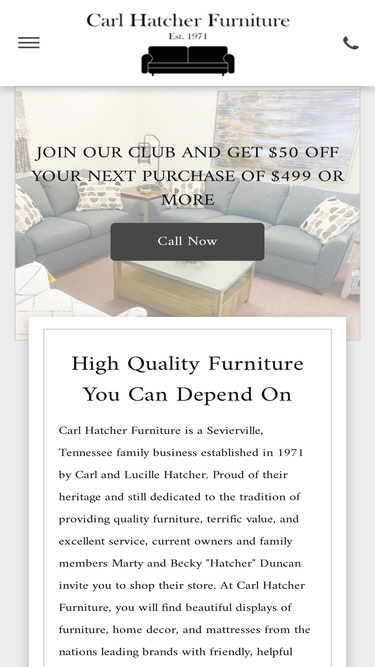 100%Shop Carl Hatcher Furniture in Sevierville, TN, where you will find only quality furniture and mattresses at a terrific value. Visit our store today!