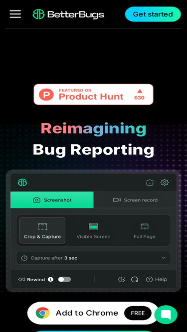 Capture screenshots, record screens, or Rewind the last 2 minutes, anytime, for context-rich bug reports. Get auto-attached developer logs and debug with AI.
