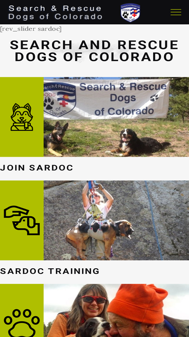 Welcome to Search and Rescue Dogs of Colorado Search and Rescue Dogs of Colorado (SARDOC): Colorado's Trusted Search Dog Certification Agency Since 1983 Founded in 1983, SARDOC was created to meet the growing demand for highly skilled search dog teams dedicated to locating missing individuals.