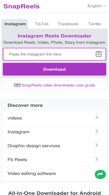83%SnapReels este un program de descărcare Instagram Reels, care vă permite să descărcați role, videoclipuri, fotografii, povești de pe Instagram online.
