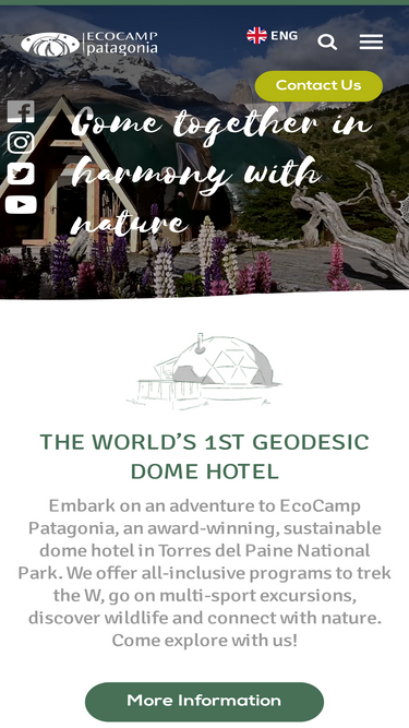 97%EcoCamp Patagonia is a fully sustainable geodesic dome hotel in the heart of Torres del Paine National Park. From this base, you can explore Patagonia.