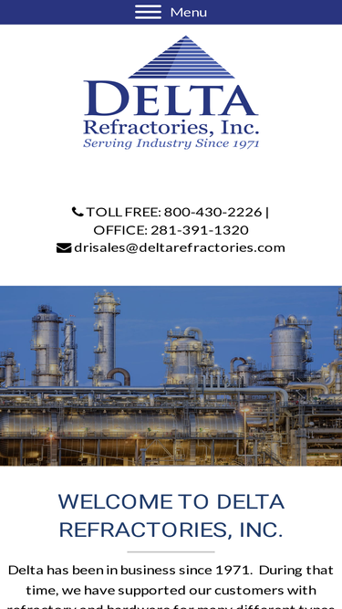 100%Delta Refractories, Inc. has been a leading manufacturer/distributor of a wide range of refractory maintenance materials. Our products include modules & blankets, monolithic refractories, composite shapes, corrosion products, precast shapes, IFB’s & Firebrick, seals & gaskets, hardware and more.