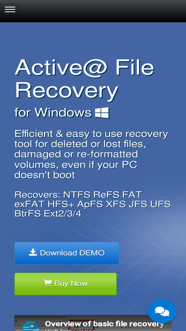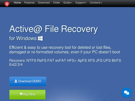 100%active@ file recovery provides ability to detect and recover lost files and damaged disks.
