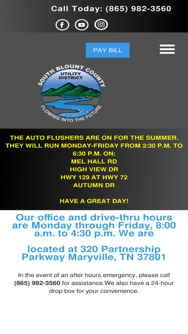 62%At South Blount Utility we are here for all your water needs. Contact us at 865-982-3560 for questions about us, locations, careers, rates, or announcements.