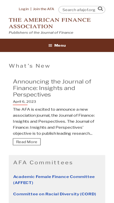 100%The American Finance Association (AFA) is the premier academic organization devoted to the study and promotion of knowledge about financial economics.