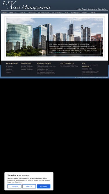Headquarters Office 155 North Wacker Drive Suite 4600 | Chicago, IL 60606 Tel: (312) 460-2443 | Fax: (312) 220-9241 For General Inquiries, Please Contact: Josh Dupont Partner & Director of Business Development Tel: 312-327-5054 | jdupont@lsvasset.com Brett Goldacker Director, Business Development Tel: 312-327-4328 | bgoldacker@lsvasset.com Driving Directions LSV is located in downtown Chicago at 155 […]