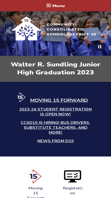 76%Home - Community Consolidated School District 15 in Illinois with 14 elementary (1 dual language), 5 middle, 1 early learning and 1 therapeutic day school.