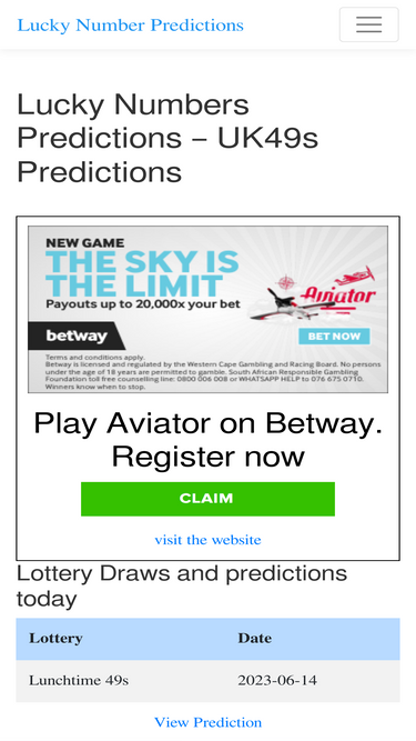 76%Lottery Draws and predictions today Lucky Numbers Dream Guide Lucky Number Predictions Welcome to South Africa’s #1 Lucky Numbers website!Here you can find the Latest Lucky Number Predictions using Hot & Cold Numbers and the Latest Lucky Number Results. We base our lucky number predictions on historical data looking at 100’s of past draws and […]