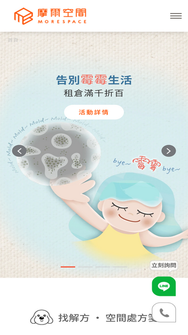 21%各季優惠活動看這裡,摩爾空間提供最優惠的價格,趁這波活動將用不到的物品都帶來個人倉庫存放吧!讓摩爾空間陪著您改善居家環境、提高生活品質。24小時服務專線: 02-5578-7677,立即詢問享折扣!