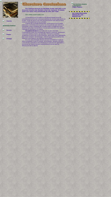 59%un web site dedicado a la literatura del ecuador con textos de cuentos, poemas, fragmentos de novelas y articulos de critica.