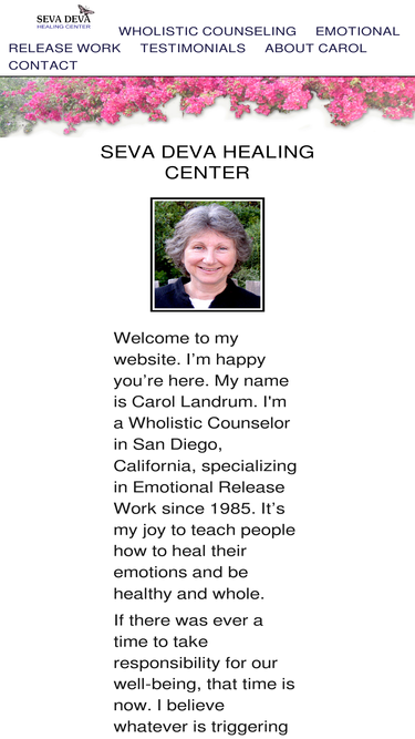 100%seva deva is a healing center in san diego, california. carol landrum has a wholistic counseling practice, including emotional release work and hatha yoga classes.