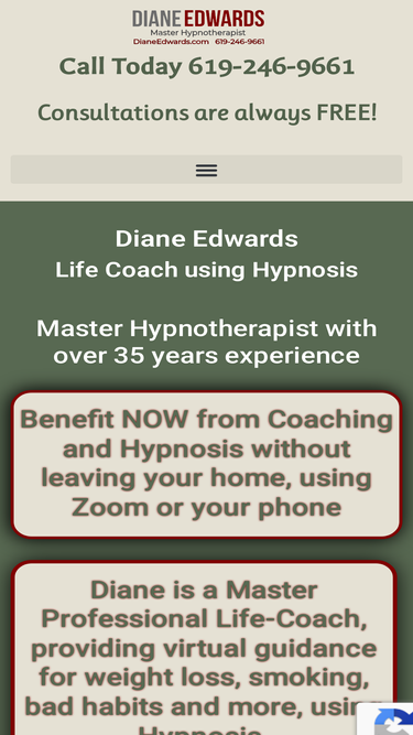 100%Diane Edwards is a San Diego top professional Hypno-Coach that uses Hypnosis and Coaching for immediate positive change. Free Consultations