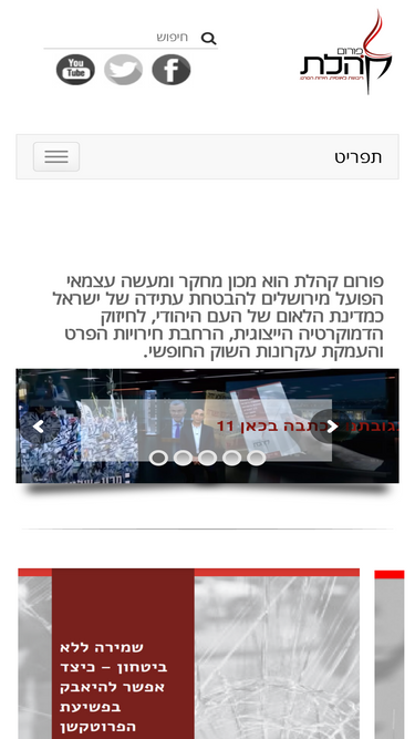 89%פורום קהלת הוא מכון מחקר ומעשה עצמאי הפועל מירושלים להבטחת עתידה של ישראל כמדינת הלאום של העם היהודי, לחיזוק הדמוקרטיה הייצוגית, הרחבת חירויות הפרט והעמקת עקרונות השוק החופשי. קראו עוד לכל ניירות העמדה תוכן קהלת לכל התוכן רשתות חברתיות Icon-X Icon-Icon-awesome-facebook-f Icon-Icon-awesome-instagram Icon-Icon-awesome-youtube Icon-Icon-simple-tiktok Icon-Icon-awesome-telegram-plane
