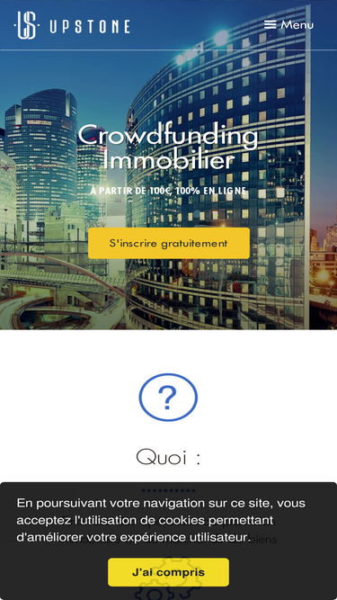 80%Upstone est une plateforme de financement participatif dédiée aux projets immobiliers et permettant d'investir à partir de 100 euros, de façon simple, intuitive et sécurisée.