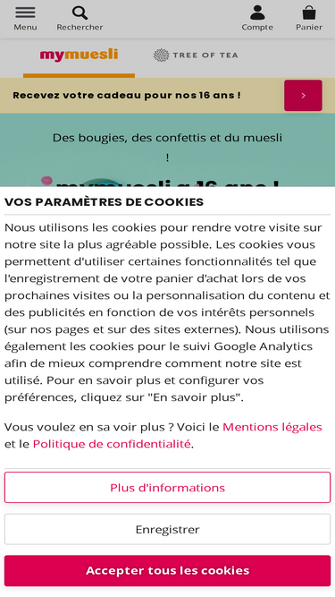 100%100 % Bio - voilà ce qu'est mymuesli. Tous les ingrédients de nos mueslis, porridges et snacks sont issus à 100 % de l'agriculture biologique. Bon pour vous et pour notre planète. En savoir plus maintenant !
