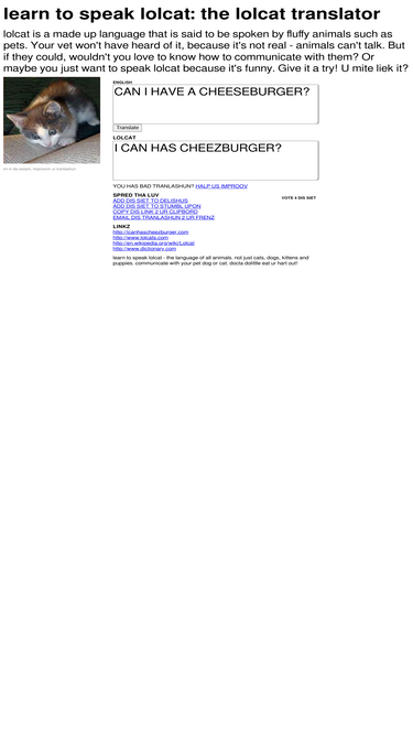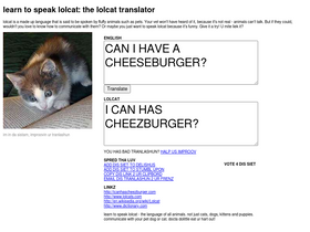 79%translate english into lolcat - the language of all cute animals and pets. docta dolittle eat ur hart out!