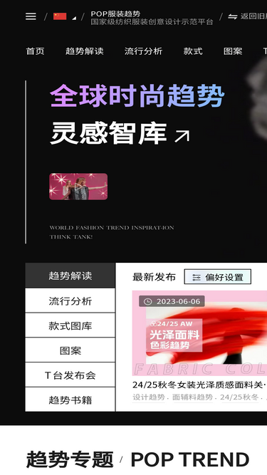 pop趋势网是一家时尚、专业、高端、领先的服装流行趋势预测网站,专注于提供全球最新品牌服装款式、独立设计师款式、电商市场款式、时装周t台秀场高清款式、原创花型图案和时尚杂志书籍,从色彩、面料、图案印花、工艺、灵感、主题、廓形等方面,为设计师提供前沿的服装趋势企划和服装市场流行趋势分析报告。