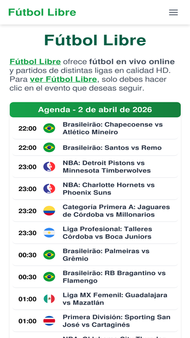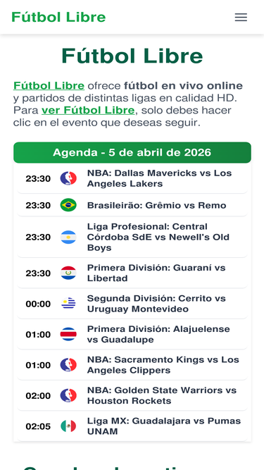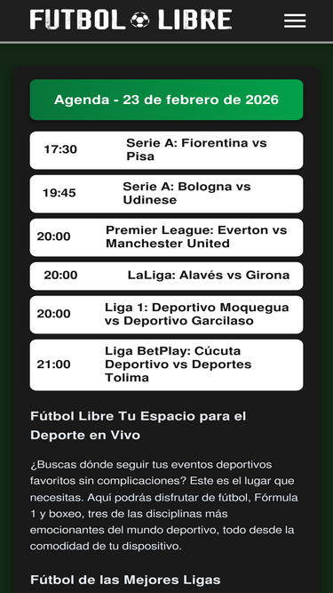 77%Fútbol Libre TV te ofrece partidos en vivo online en HD, señales estables, canales deportivos y transmisiones sin cortes para ver fútbol desde cualquier dispositivo.