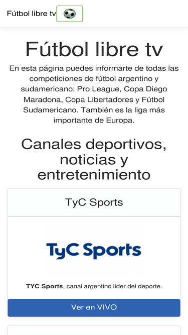 100%Disfruta del fútbol en vivo y en directo con Futbol libre TV. Mira partidos de la Copa Libertadores, Copa Sudamericana y emocionantes encuentros de Boca Juniors y River Plate, todo online.