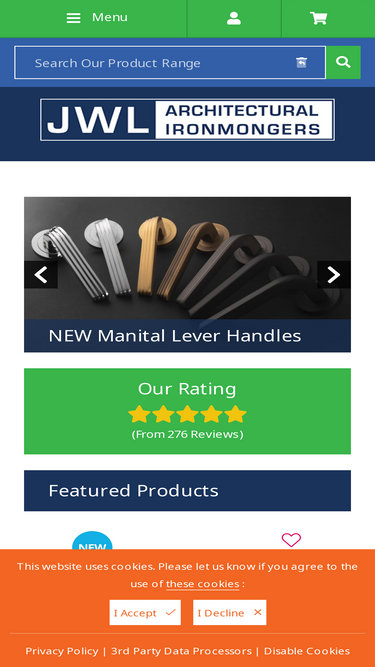 73%Welcome to JWL Architectural Ironmongers, architectural Ironmongers in Nottingham that specialises in door furniture, door closes, locks, fixtures and fittings.