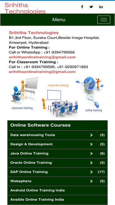 100%online software training institute in india, revanth technologies provides online software training by real time experts from hyderabad, india. call 9290971883 for online software training demo timings and classes. we provide online software training in java online training, digital marketing online training, reactjs online training, angularjs online training, nodejs online training, splunk online training, javascript online training, spring and hibernate online training, testing tools online training, selenium online training, cognos online training, sap online training, seo online training, web designing online training, informatica,j2ee training,.net, perl scripting, shell scripting, ibm websphere admin, tibco bw, oracle 10g dba, web logic server administration online training