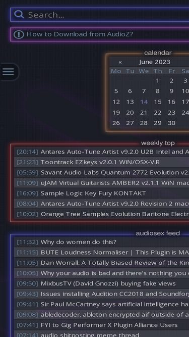 100%audio warez community for sound producers, composers and audio-enthusiasts with daily updates of sample libraries, vsti plugins, video tutorials, multitracks and acapellas, software updates news.