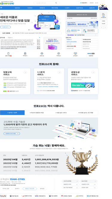 한국고객만족도 1위 인포21C는 나라장터(g2b.go.kr)·지자체·공공기관 맞춤 입찰정보와 연간 회원낙찰 4만 건의 결과를 기록중인 낙찰이 잘 되는 입찰 전문 플랫폼입니다. 발주처·경쟁사 분석, 적격심사 계산, 공동도급, 입찰교육, 내역서·입찰자료, 입찰서류함, 입찰무료알림 등 입찰 성공에 필요한 모든 서비스를 제공하여 투찰 전략과 낙찰률을 높여드립니다.