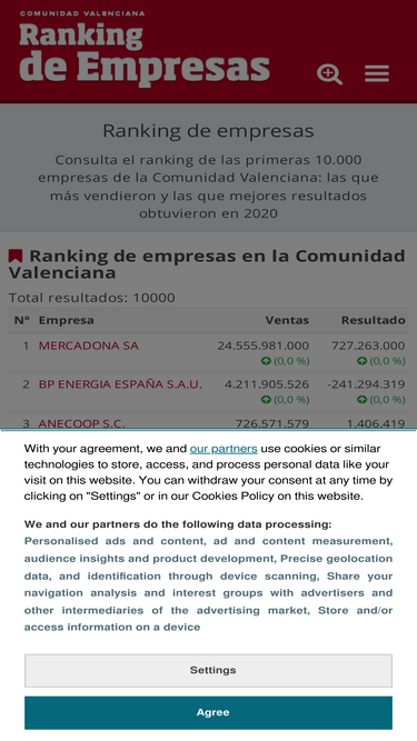 72%Consulta el ranking de las primeras 10.000 empresas de la Comunidad Valenciana: las que más vendieron y las que mejores resultados obtuvieron en 2020